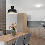 At the Metropolitan Star Apart Hotel, every guest room is meticulously equipped to ensure a restful stay. Highlights include flat-screen TVs, air conditioning, and a seating area for your relaxation needs. Selected rooms elevate the experience further with private balconies or terraces, offering splendid views of Bratislava's center. Attention to detail is evident, with each room also featuring conveniences such as kettles, bed linen, and towels to make your stay as comfortable as possible.